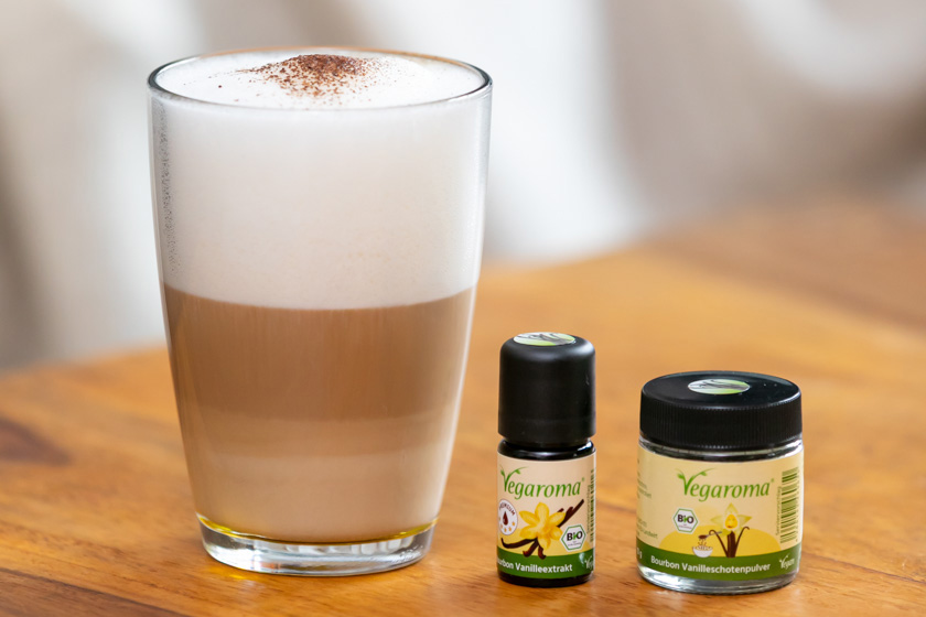Aromatisierter Latte Macchiato, Haferlatte & Co werden meistens mit aromatisiertem Sirup zubereitet. Wenn du deinen Kaffee gerne ungesüßt trinkst, aber auch den Geschmack von Vanille im Kaffee liebst, haben wir die Lösung für dich! Für deinen zuckerfreien Vanilla Macchiato gibst du einfach 3-4 Tropfen Vegaroma Bourbon Vanilleextrakt in die Milch oder Milchalternative deiner Wahl und schäumst sie auf. Den Espresso dazugießen und nach Belieben mit etwas Bourbon Vanilleschotenpulver oder ungesüßtem Kakao bestreuen und genießen.