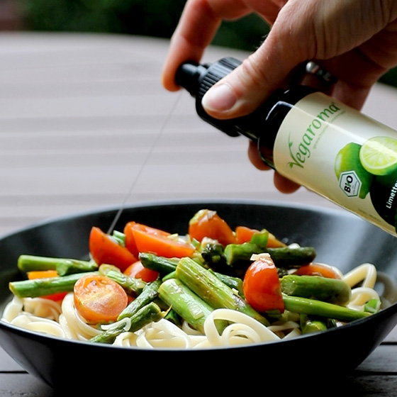 Bandnudeln mit grünem Spargel und Limettengeschmack
