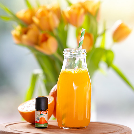 Selbstgemachte Limonade mit Karottensaft und Orangenöl