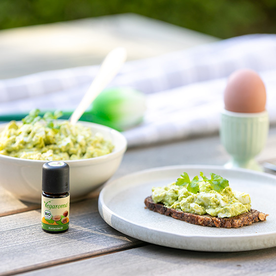 Leckerer Eiersalat mit Avocado und Korianderöl