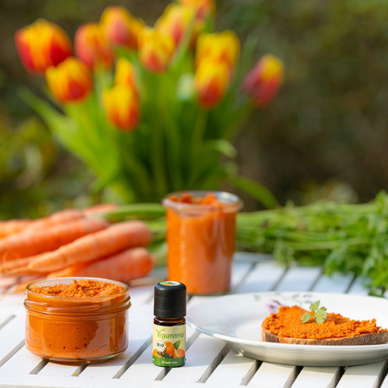 Selbstgemachte Limonade mit Karottensaft und Orangenöl