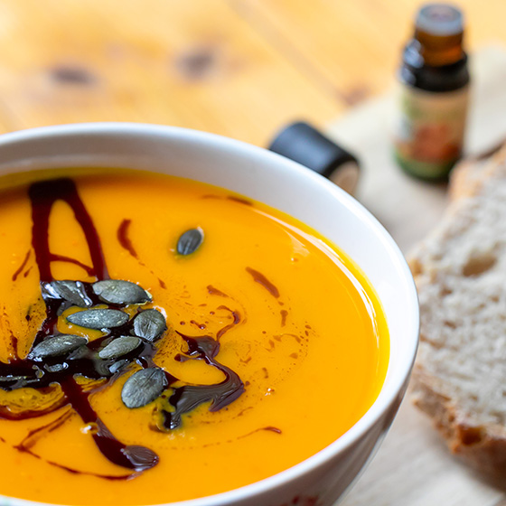 Vegane Kürbis-Kokossuppe mit Ingweröl