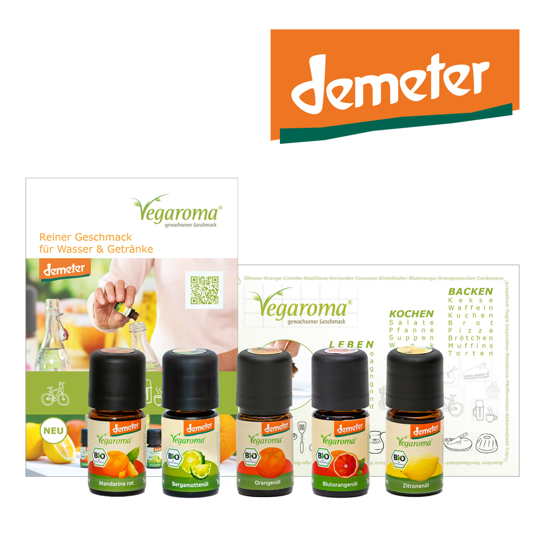 | Artikel: | siehe Bergamotte demeter Vegaroma 5 ml Artikelnummer 30320, siehe Blutorange demeter 5 ml Artikelnummer 30190, siehe Mandarine rot demeter 5 ml Vegaroma Artikelnummer 30243, siehe Orange demeter 5 ml Artikelnummer 30205, siehe Zitrone demeter 5 ml Artikelnummer 30290 |