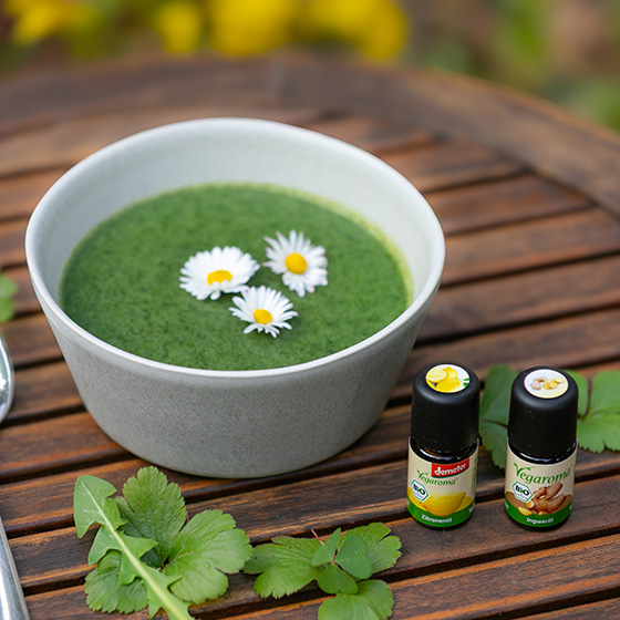 Traditionelle Wildkräutersuppe mit Zitronenöl